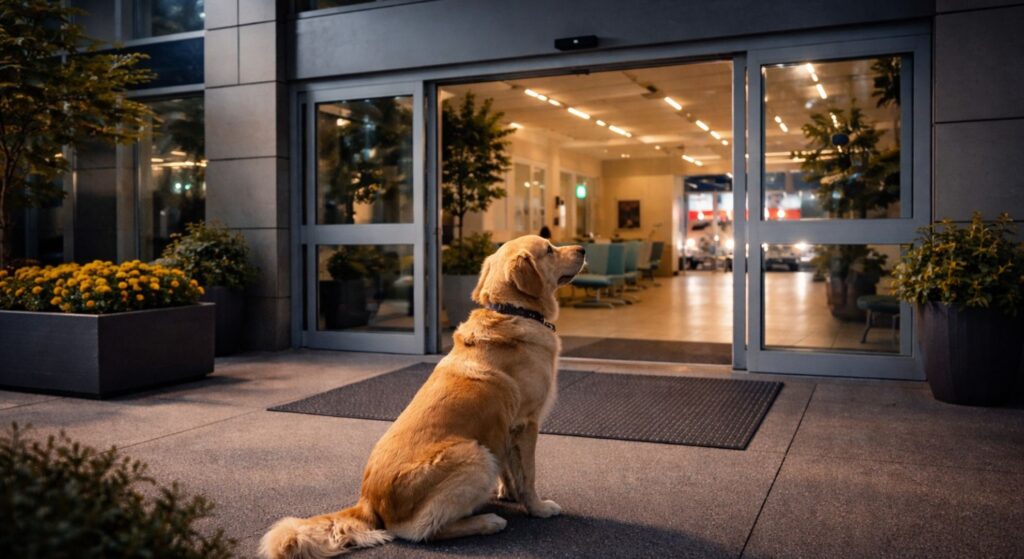 They checked his collar—no tag, only a notch worn shiny where a tag had been. Someone posted to a community group. Someone else phoned the after-hours clinic. A porter joked he was a new kind of volunteer. In the lull between beeps and buzzers, the hospital became a village, passing a dog story like a shared thermos.